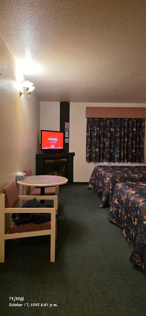 Stayed a night due to poor traffic conditions. The owner answered the phone at midnight and was friendly. I stayed there as a single female and felt welcomed and safe. The rooms were very clean, bed was very comfortable. Fireplace and air conditioning. Older motel in very good condition. Walls are a bit thin- for example, I could hear my neighbour snoring when I used my bathroom but I didn’t notice anything from my bed. Would recommend.